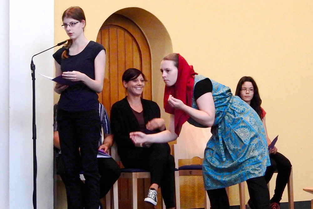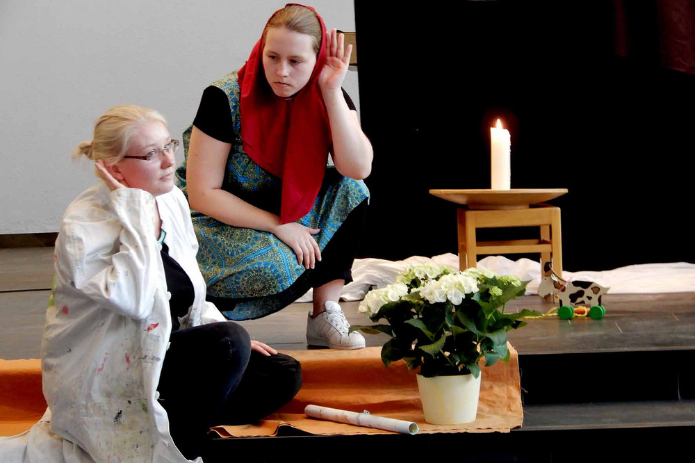 Der Unterkurs gestaltete die fröhliche Feier mit Liedern und musikalischen Arrangements. Zugleich klangen nachdenkliche Töne in den szenischen Darstellungen der russischen Legende „Varenka“ an. Als biblischer Bezug stand die Seligpreisung aus Matthäus 5,9 im Mittelpunkt: Selig sind die Friedfertigen, denn sie werden Gottes Kinder heißen.