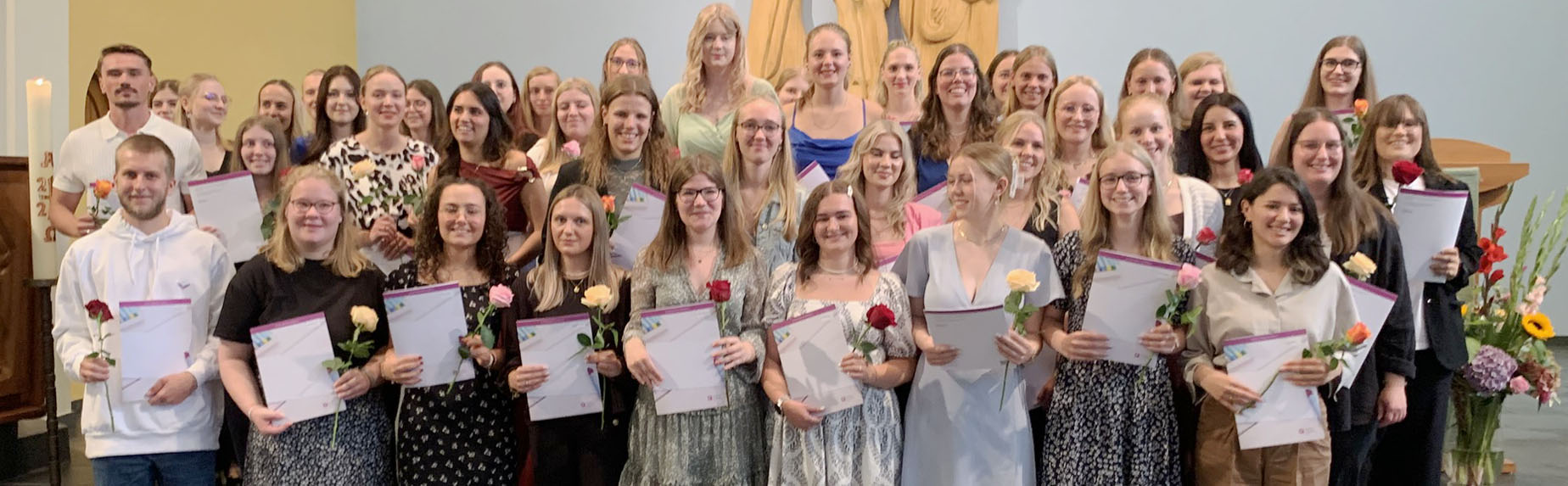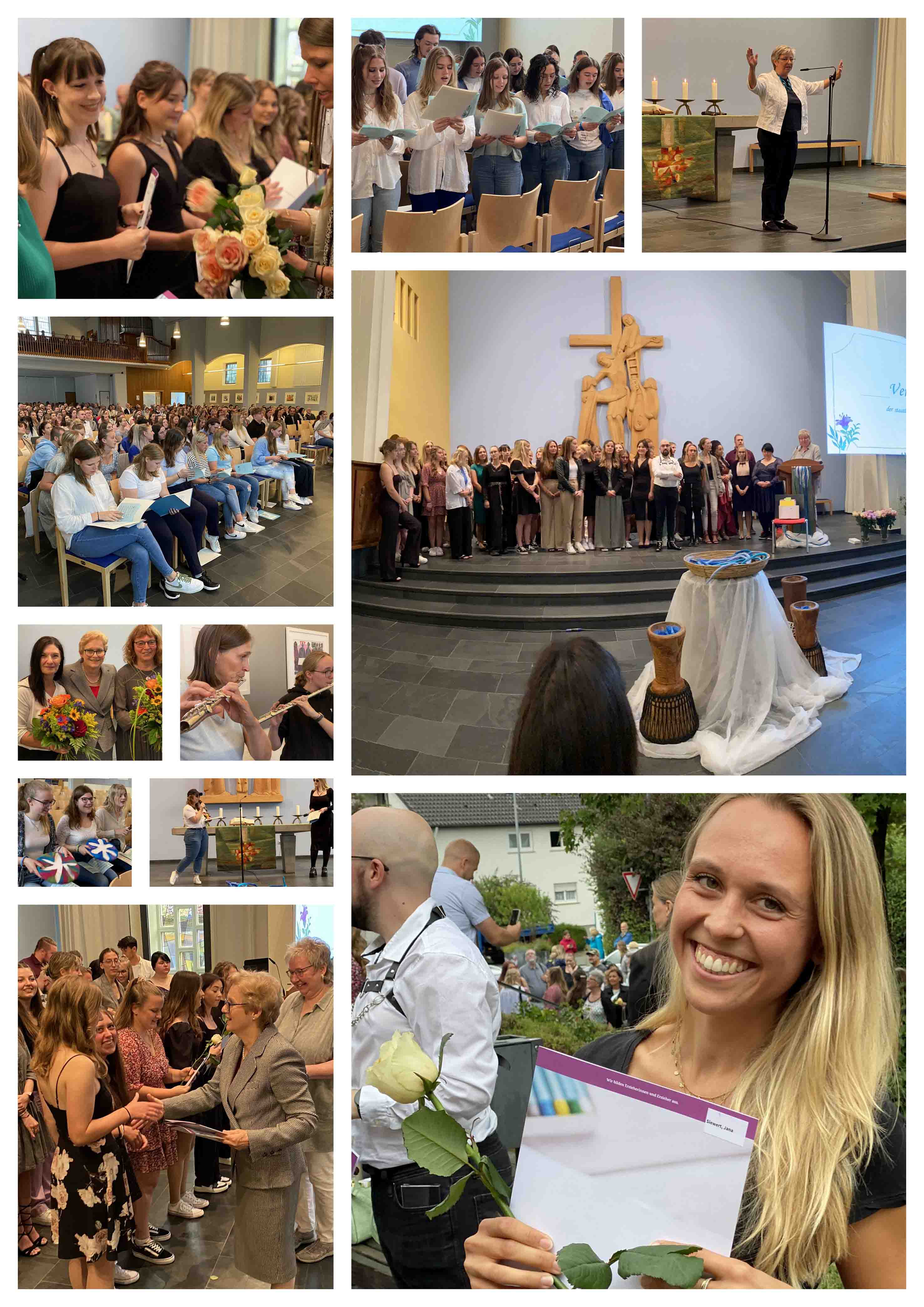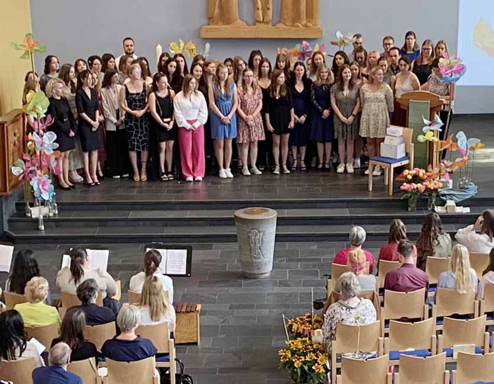 Im Rahmen des Gottesdienstes verlieh die Evangelische Fachschule 53 Berufspraktikantinnen und Berufspraktikanten die staatliche Anerkennung. Die Feier wurde von den angehenden Erziehern der Unterkurse und ihren Dozenten mit viel Musik, Kreativität und Engagement gestaltet. Schulleiterin Kott hob in ihrer Ansprache hervor, dass auch die Schulgemeinschaft wie ein bunter Garten sei. Ein Garten ist ein Ort der Ruhe und der Sicherheit, der die Gesetzmäßigkeiten und Rhythmen des Lebens widerspiegelt, so Kott. Die Fachschule an der Kreuzeiche ist stolz darauf, ihre Schülerinnen und Schüler mit Haltung, Werten und Fachwissen auf das Berufsfeld vorbereitet zu haben und wünscht ihnen alles Gute für ihre berufliche Zukunft.