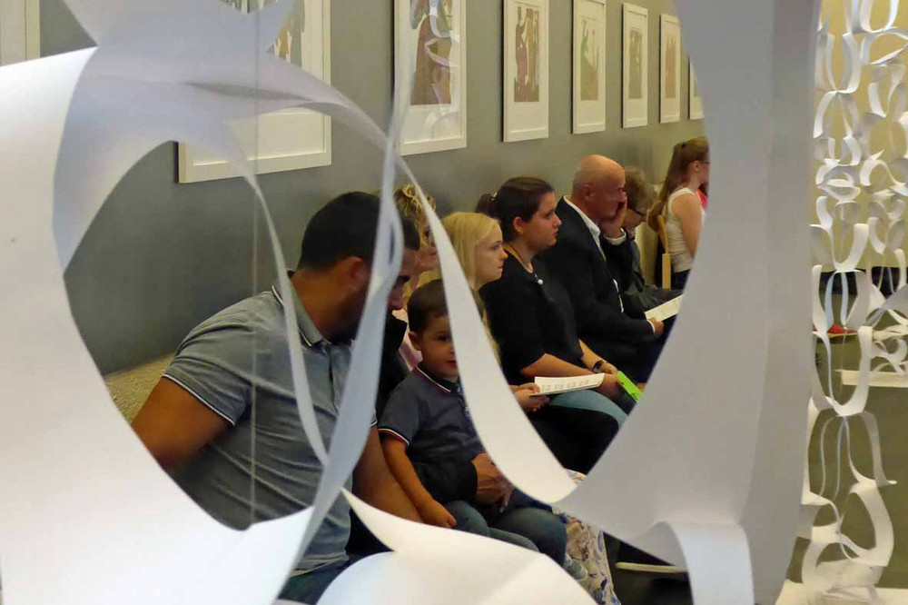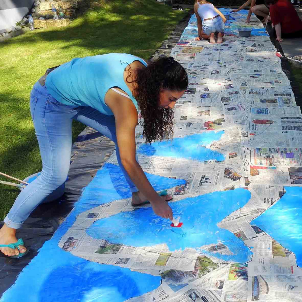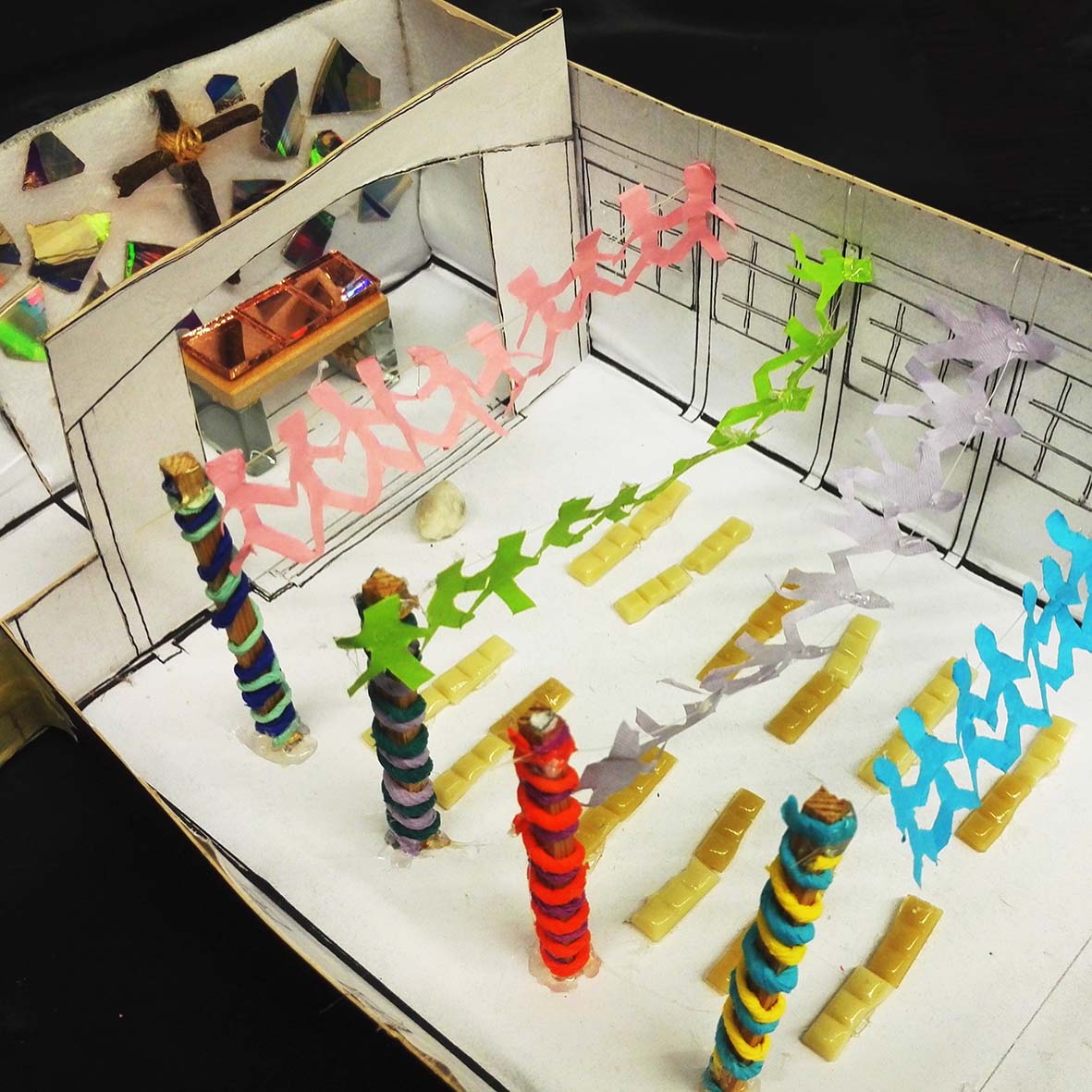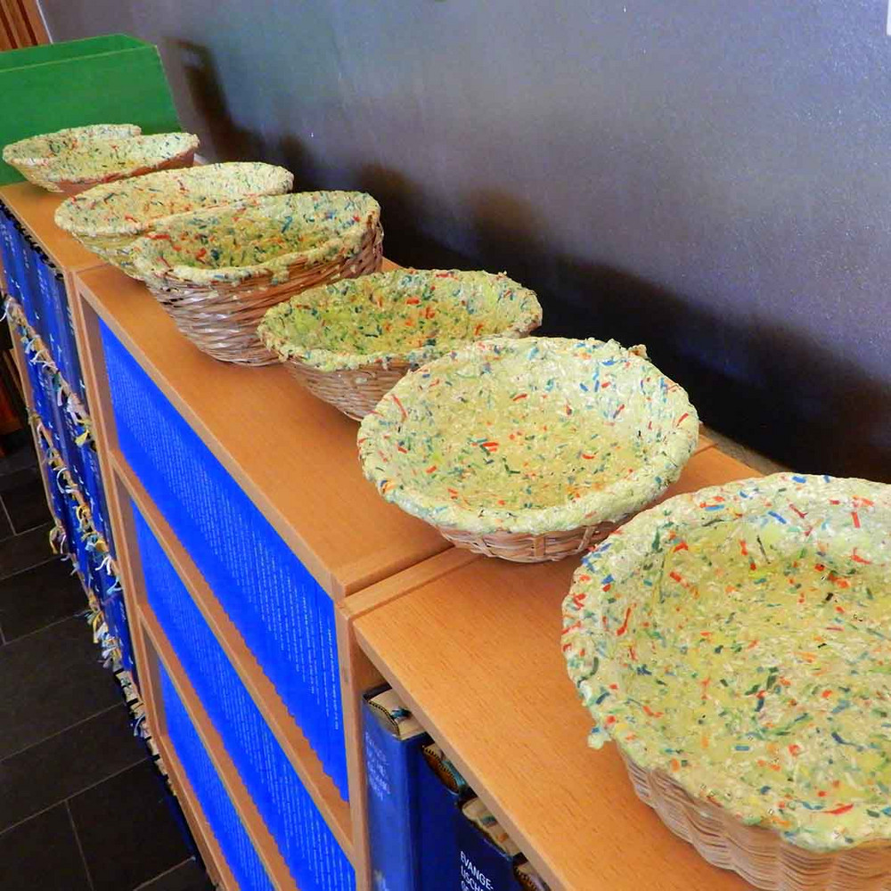 In der Gestaltungsgruppe haben wir aus Altpapier Pappmaché-Opferkörbe hergestellt, handgeschöpfte Give- away-Karten gestaltet und zwei 14 Meter lange Banner entwickelt. Der Weg vom Modell bis zur Realisation im Kirchenraum wurde mit allen materiellen und technischen Aufgaben erfahren.