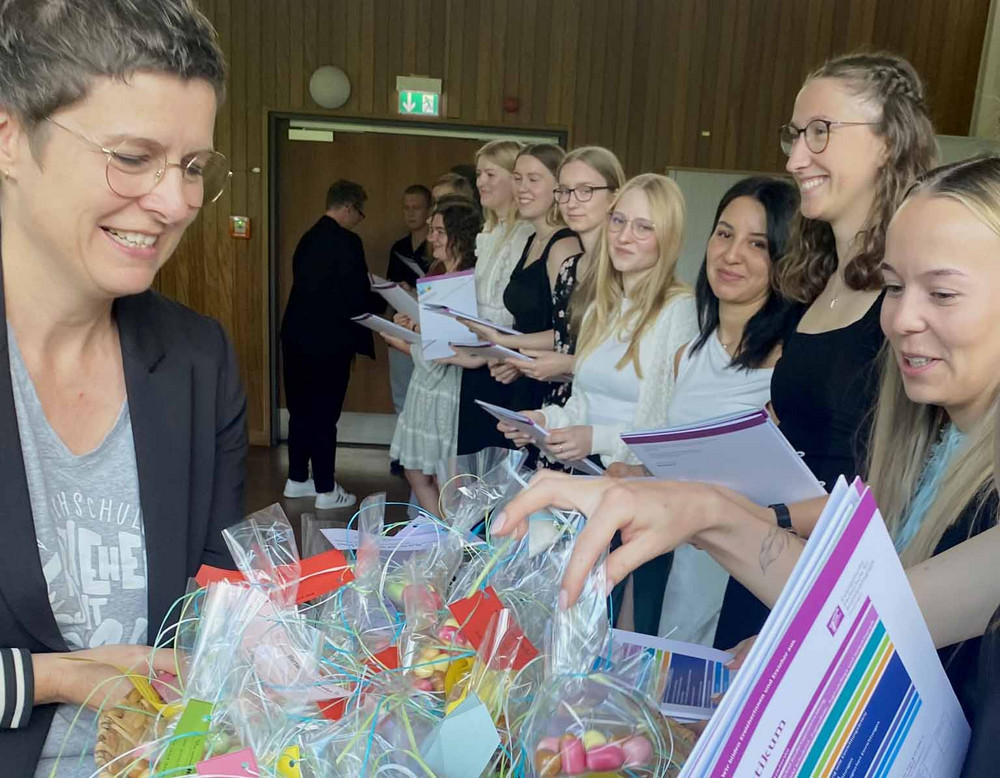 In ihrer Rede erinnerte Schulleiterin Friederike Kott daran, wie wichtig die Rolle von Erzieher*innen in unserer Gesellschaft ist – gerade in Zeiten, die von Unsicherheit und Wandel geprägt sind. „Ihre pädagogische Arbeit ist mehr als Betreuung – sie ist Beziehungs- und Bildungsarbeit, die Kindern Halt gibt und Familien stärkt“, so Kott. Das Bild des Schilfrohrs, das sich im Sturm biegt, aber nicht bricht, wurde zum Symbol für die Resilienz und Standhaftigkeit, die pädagogische Fachkräfte auszeichnet.