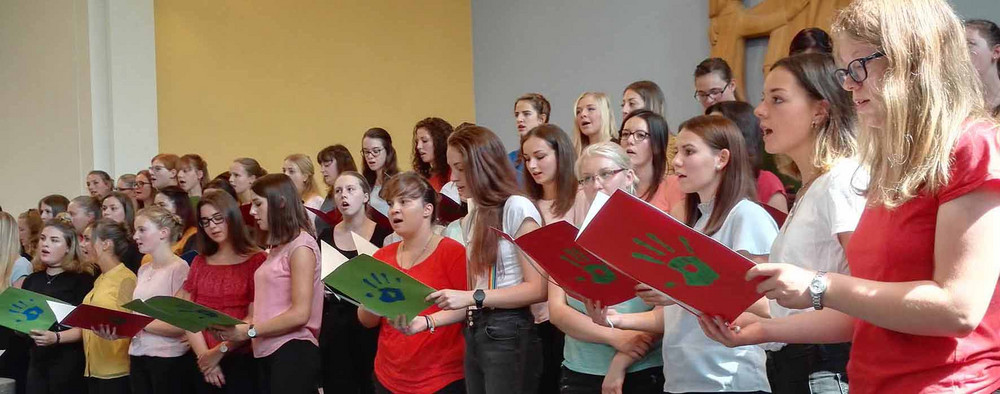 "Peaceful" war das Motto des Abschlussgottesdienstes im Juli 2018. In der Kreuzkirche feierten die Schulgemeinschaft, die AbsolventInnen und deren Familien und Freunde das Schuljahresende und das Ausbildungsende der frisch gebackenen Erzieherinnen und Erzieher.