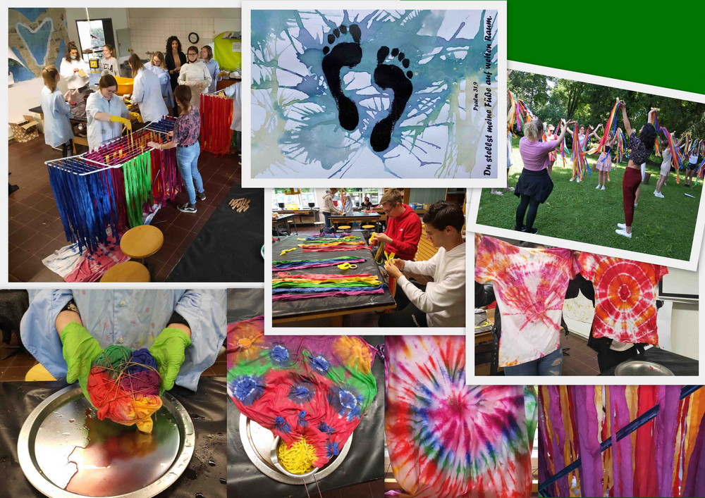 Abgerundet wird der gemeinsame Auftritt mit passenden, selbst gebatikten T-Shirts und gefärbten Regenbogen-Rhythmik-Bändern. Wir wünschen allen einen guten Weg!