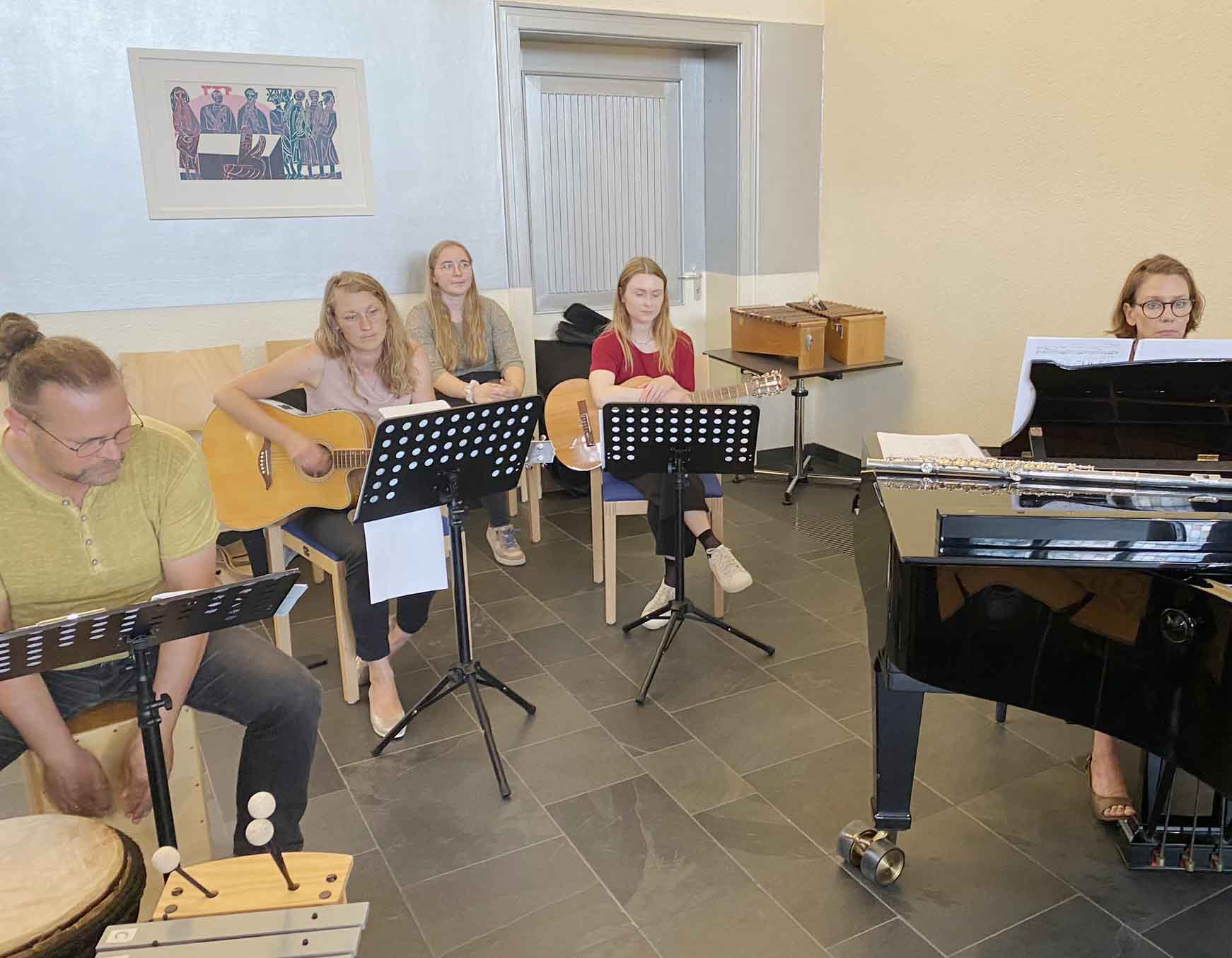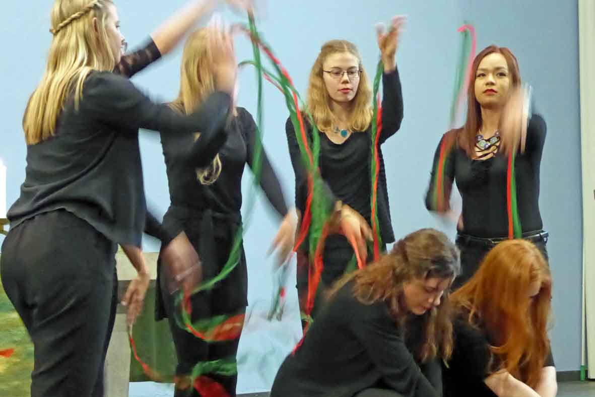 Gute Gedanken und Wünsche des Unterkurses drücken sich in Bewegungs- und Rhythmik-Studien, Liedern und Texten aus, die extra erfunden und geprobt wurden.