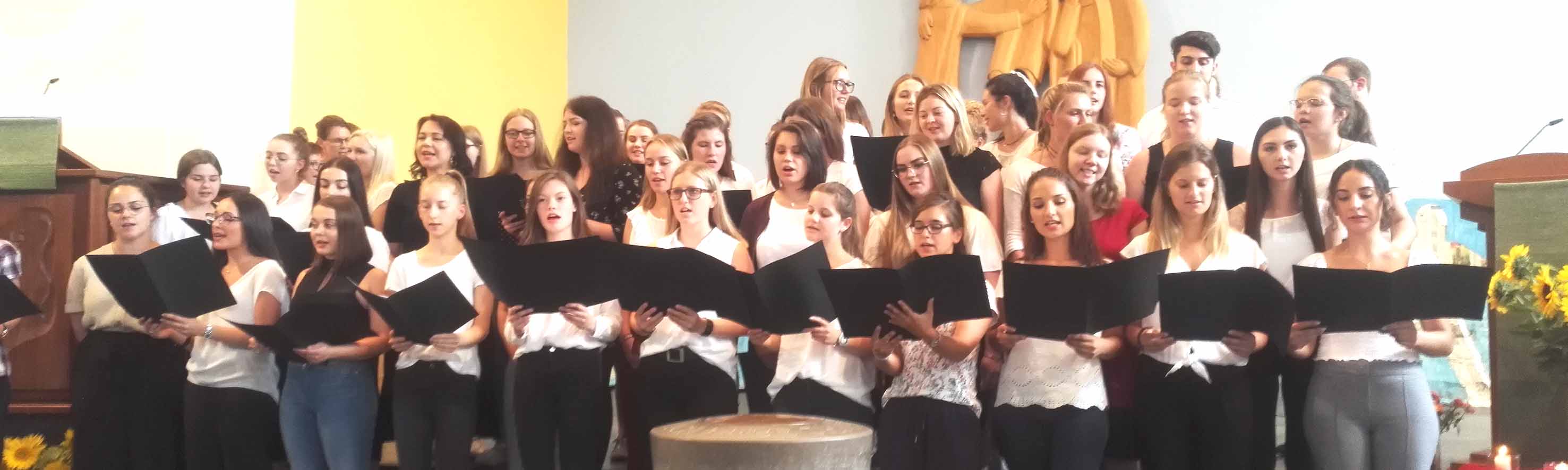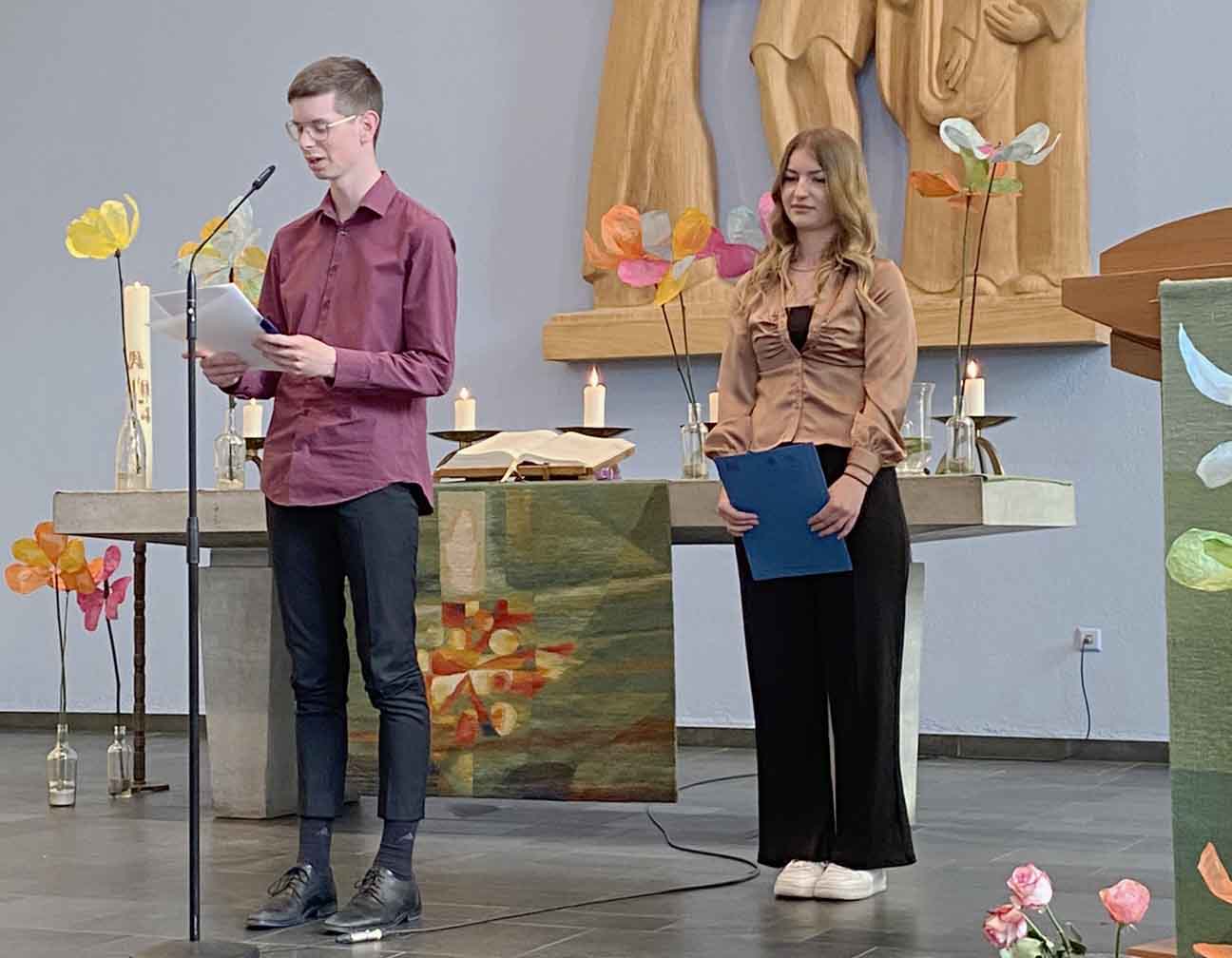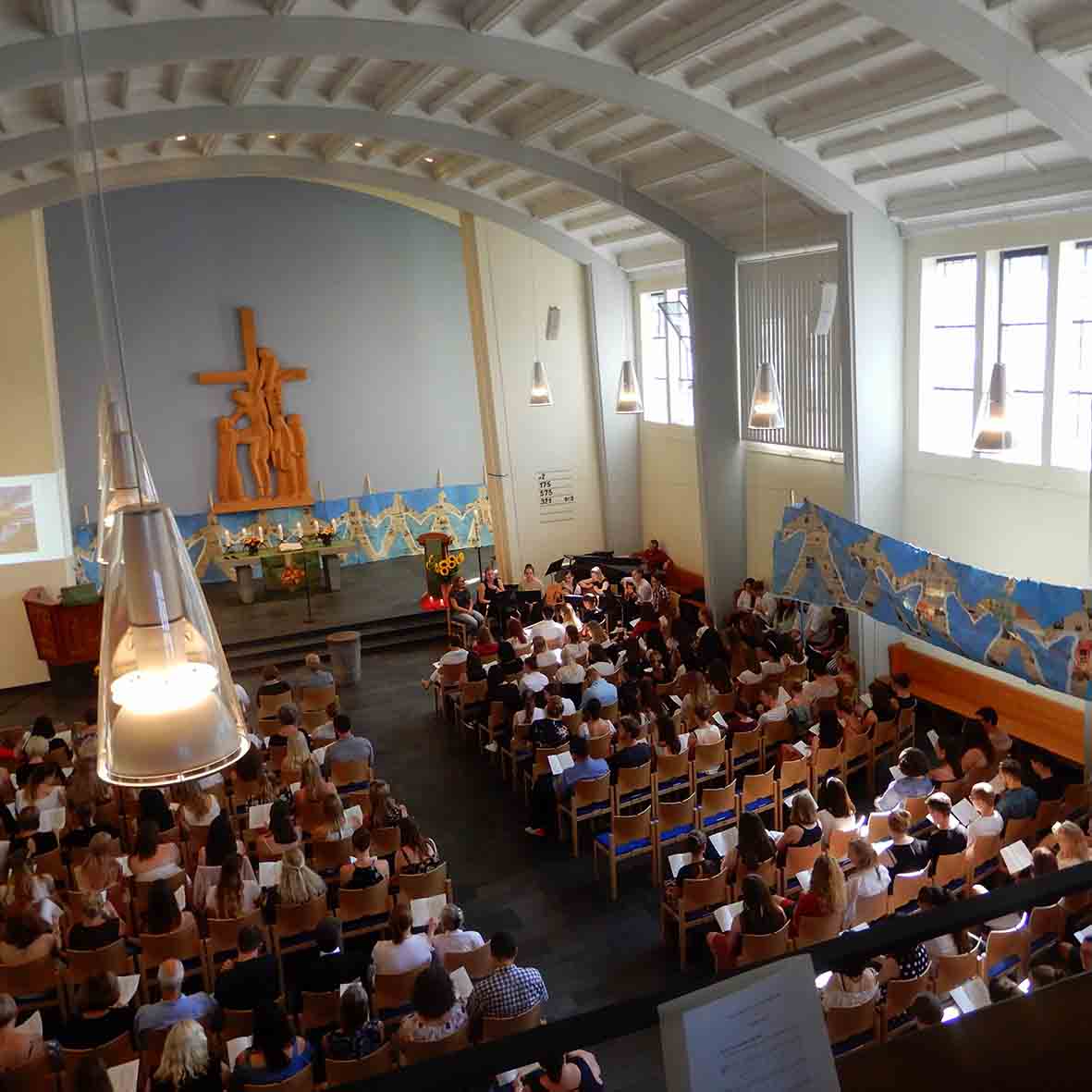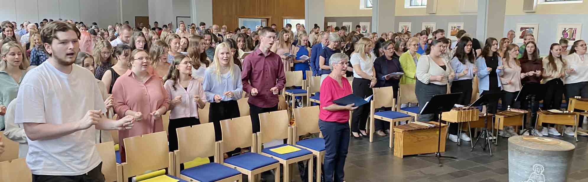 Zum Schuljahresschluss hat der Unterkurs den Gottesdienst gestaltet - mit Liedern und Texten zur Jahreslosung „Du bist ein Gott, der mich sieht“. Im Abschlussgottesdienst in der Kreuzkirche feierten wir das diesjährige Schuljahresende mit toller Musik, Anspielen und der Verleihung der Staatlichen Anerkennung zum erfolgreichen Abschluss des Berufspraktikums, herzlichen Glückwunsch!