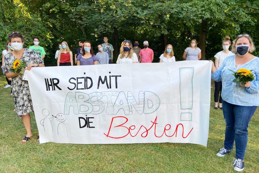 Das Kollegium musste sich relativ rasch auf andere Formen des Unterrichtens in der Begleitung der zukünftigen Erzieher*innen einstellen. Alle Möglichkeiten, unter Abstandsregelungen und Hygieneverordnungen nicht nur im Gebäude selbst, sondern auch in der schuleigenen Mensa sowie im Wohnheim wurden umgesetzt und Zug um Zug angepasst. „Wir sind gut und in enger Absprache mit den Kindertageseinrichtungen durch die erste Welle der Krise gekommen und unsere zukünftigen Erzieherinnen und Erzieher waren trotz aller digitaler Herausforderungen motiviert und engagiert. So ist es uns gelungen unter den erschwerten Bedingungen alle Schülerinnen und Schüler gut und erfolgreich durch die Abschlussprüfungen zu bringen“, so Gabriele Beier, Schulleiterin der Kreuzeiche.