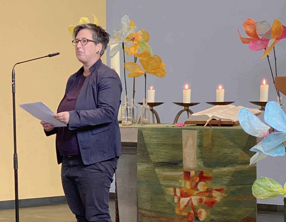 Im Anschluss an die Zeugnisvergabe an den Oberkurs (herzlichen Glückwunsch!!) fand der traditionelle Schuljahresabschlussgottesdienst in der Reutlinger Kreuzkirche statt, der in diesem Jahr unter dem Motto “In Gottes Garten” stand. Die Kirche war bis zum letzten Platz besetzt mit Gästen, SchülerInnen und Mitarbeitenden der Fachschule. Schulleiterin Friederike Kott beschrieb die Veranstaltung in der mit Menschen gefüllten Kirche als “fantastisch” und betonte die Bedeutung des Themas, das die Verbindung zwischen dem Leben, der Natur und den eigenen Entwicklungsprozessen hervorhebt.
