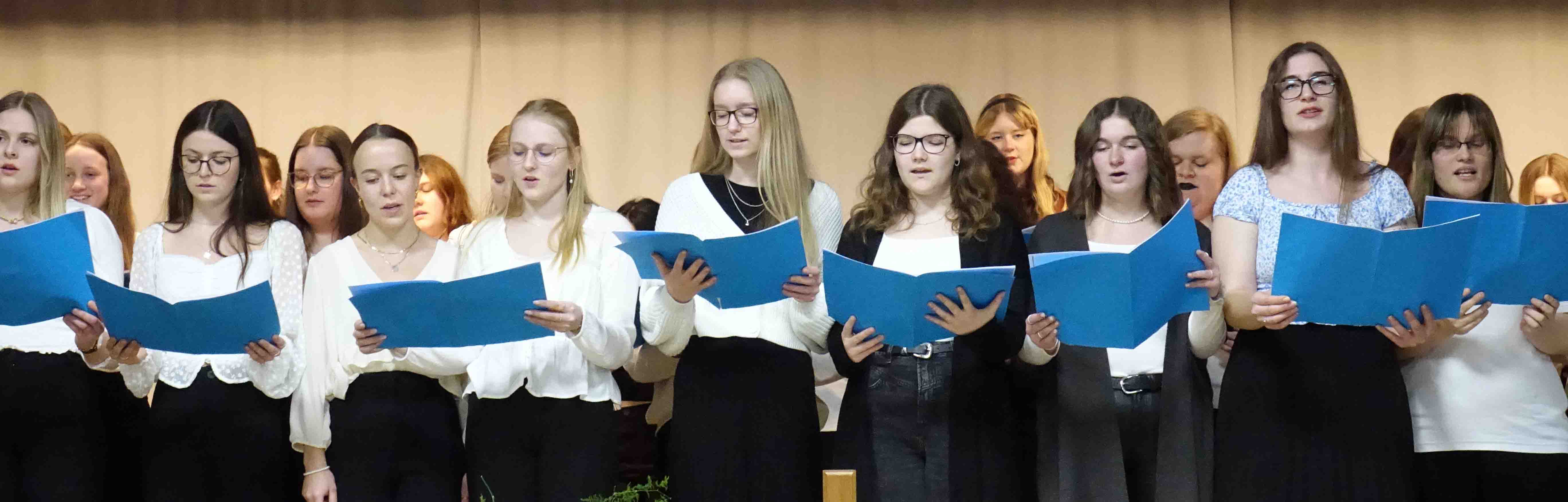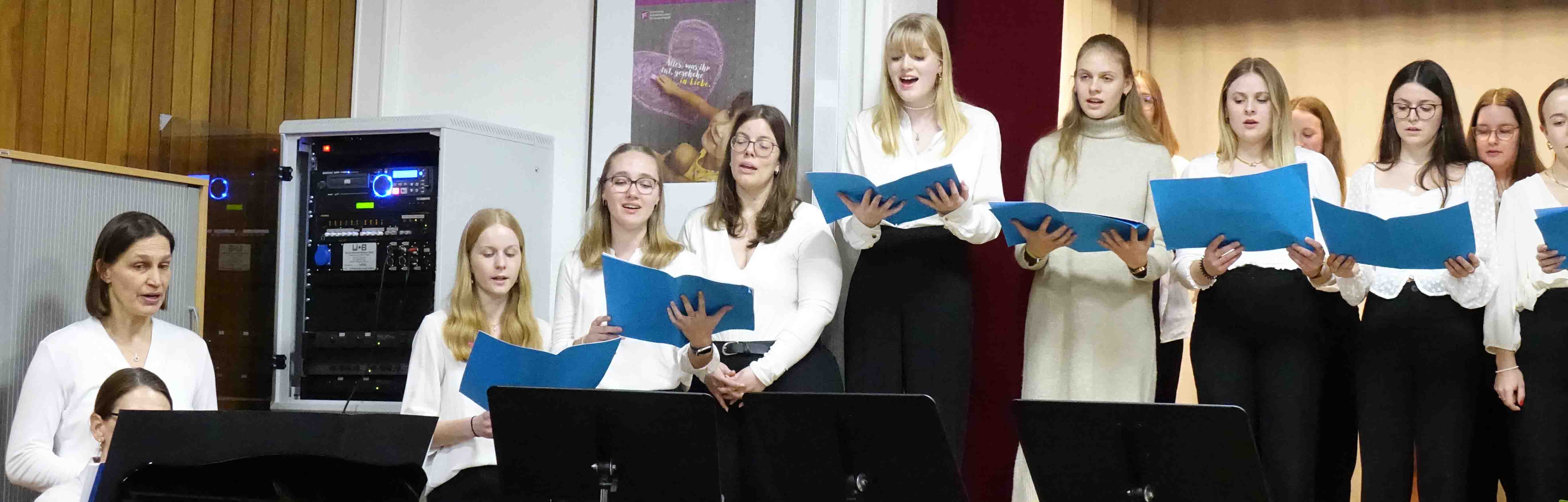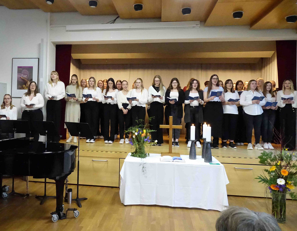 „Thanks“ und „I’ve got a feeling“ klingt es zurzeit aus dem Musiksaal: Die künftigen Erzieherinnen und Erzieher aus dem Oberkurs proben ihren Auftritt beim Gottesdienst zur Verabschiedung der langjährigen Schulleiterin. Auch eine kleine musikalische Überraschung ist geplant, die vorab nicht verraten wird. Verantwortet wird die Veranstaltung mit vielen geladenen Gästen vom Vorstand des Trägervereins: Prälatin Gabriele Wulz und Diplom-Pädagogin Heidi Fritz.