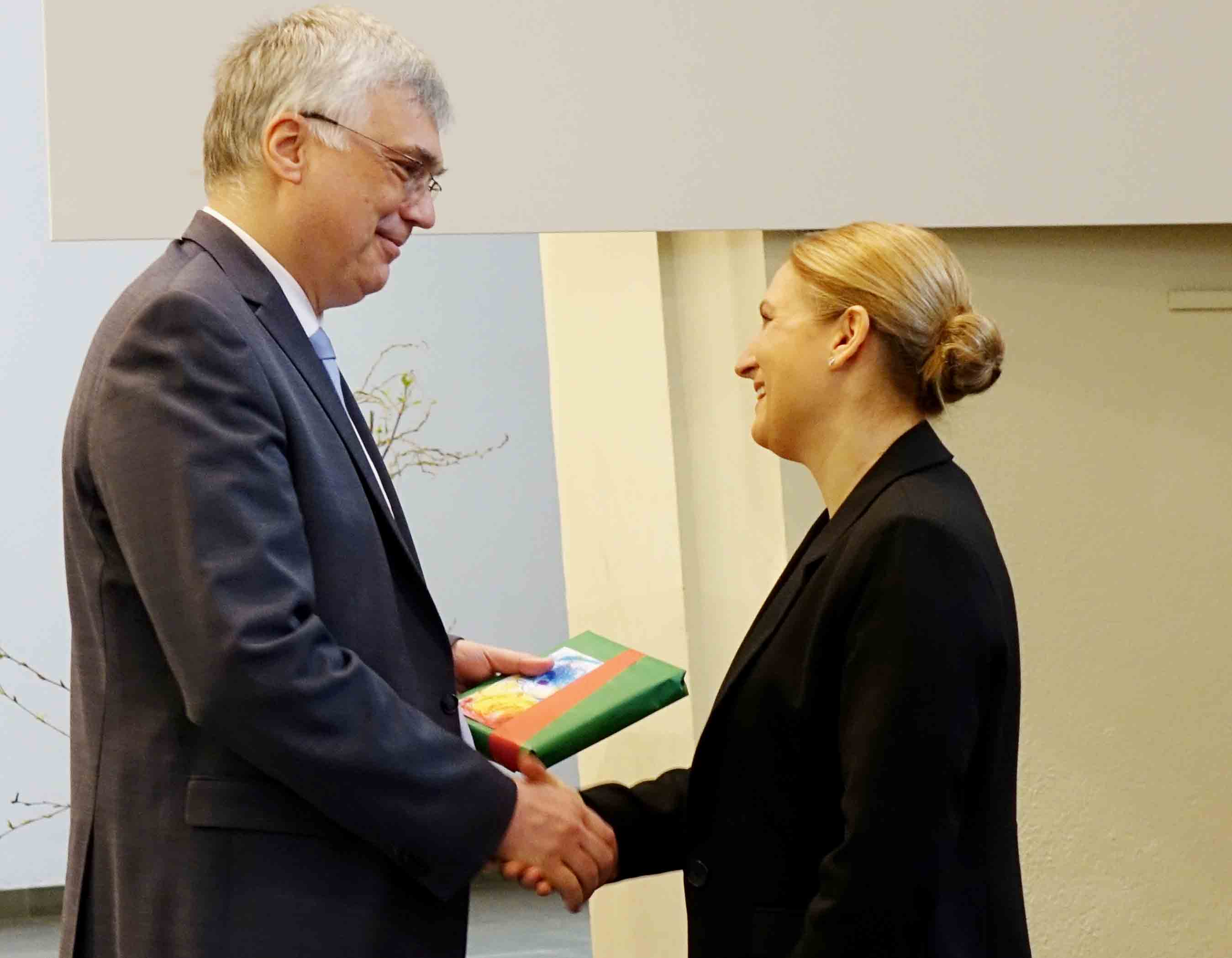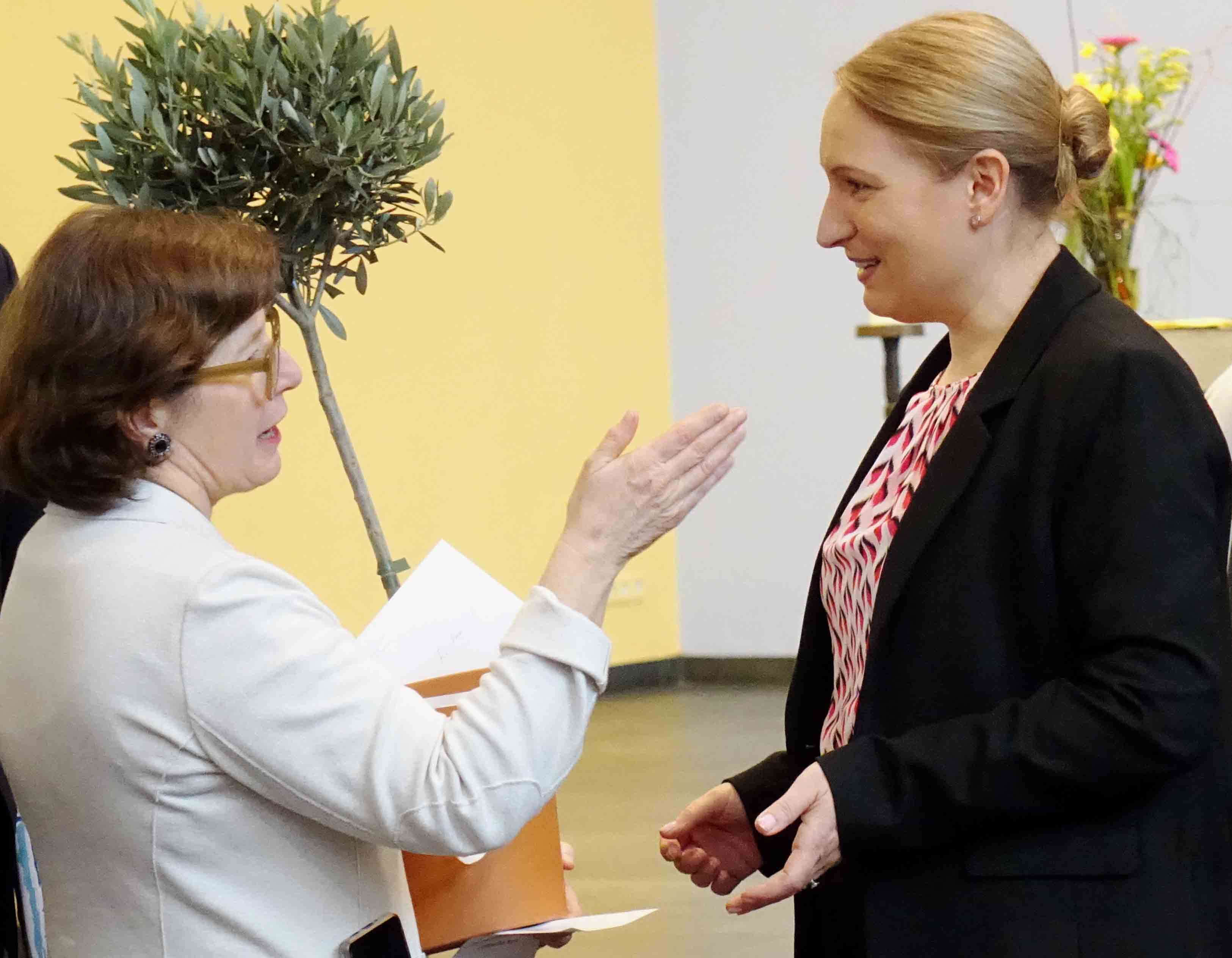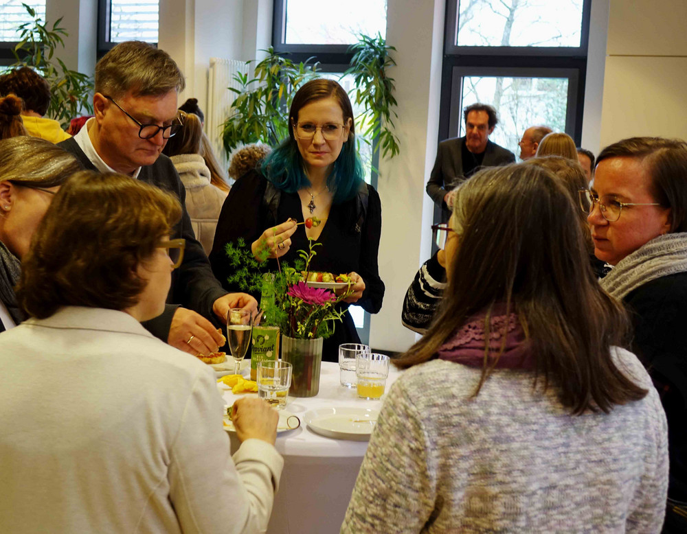Die Schulleiterin unterstrich die vielfältigen Projekte, die Andrea Dohse an der Evangelischen Fachschule angeregt und umgesetzt hat. „Andrea Dohse nimmt unsere künftigen Erzieherinnen und Erzieher kreativ hinein in den doppelten Bezug der gestalterischen, handwerklichen und naturwissenschaftlichen Themen, sodass sie in ihrer späteren Berufspraxis begeistert diese Erfahrungen an Kinder und Jugendliche weitergeben können“, so Schulleiterin Gabriele Beier. Die Kolleginnen und Kollegen an der Kreuzeiche gratulierten der Jubilarin sehr herzlich zur Auszeichnung.