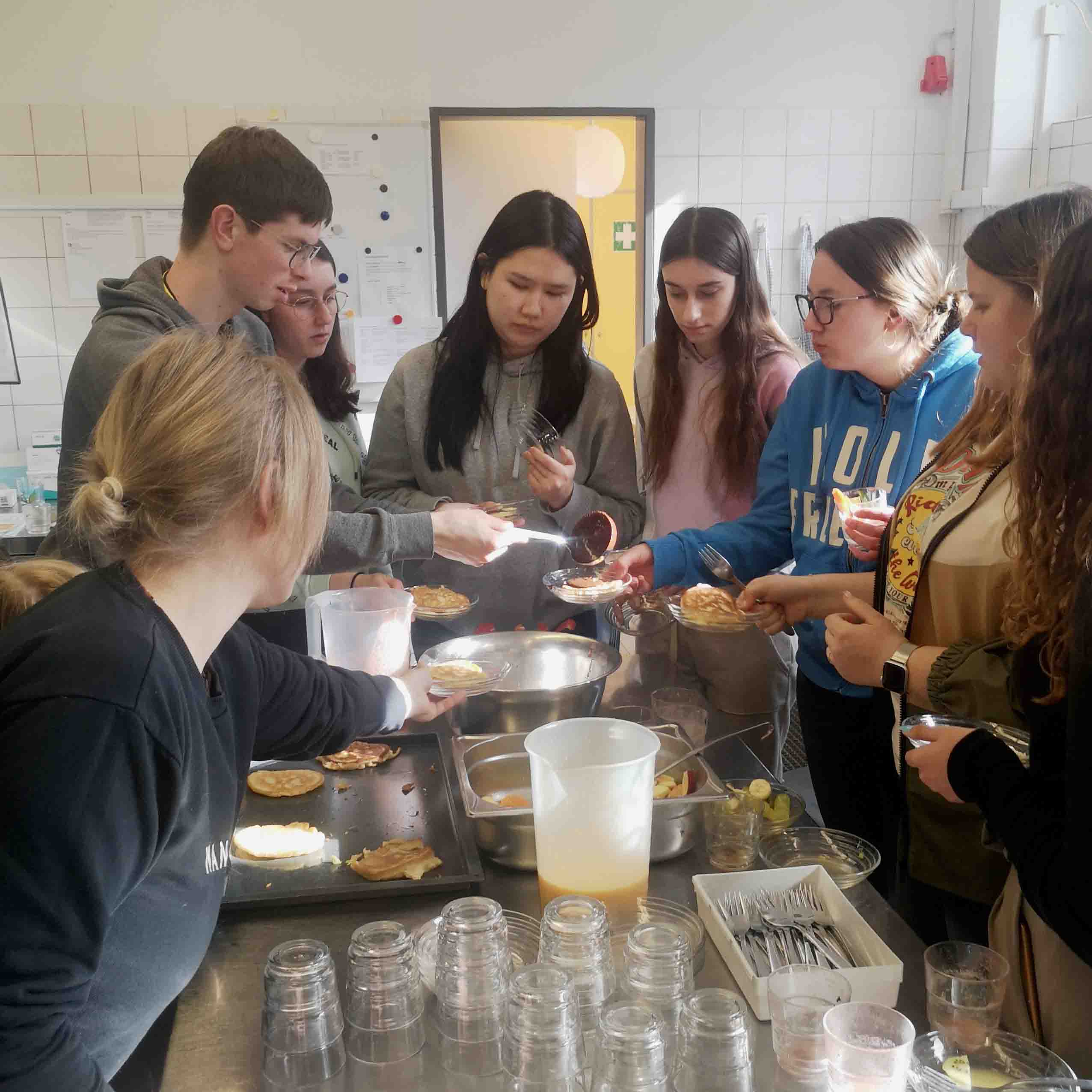 Das Berufskolleg hatte viel Spaß beim Unterricht in Ernährungslehre und alle haben sehr engagiert mitgewirkt. Die neuen Erfahrungen werden sicherlich auch zu Hause umgesetzt ...