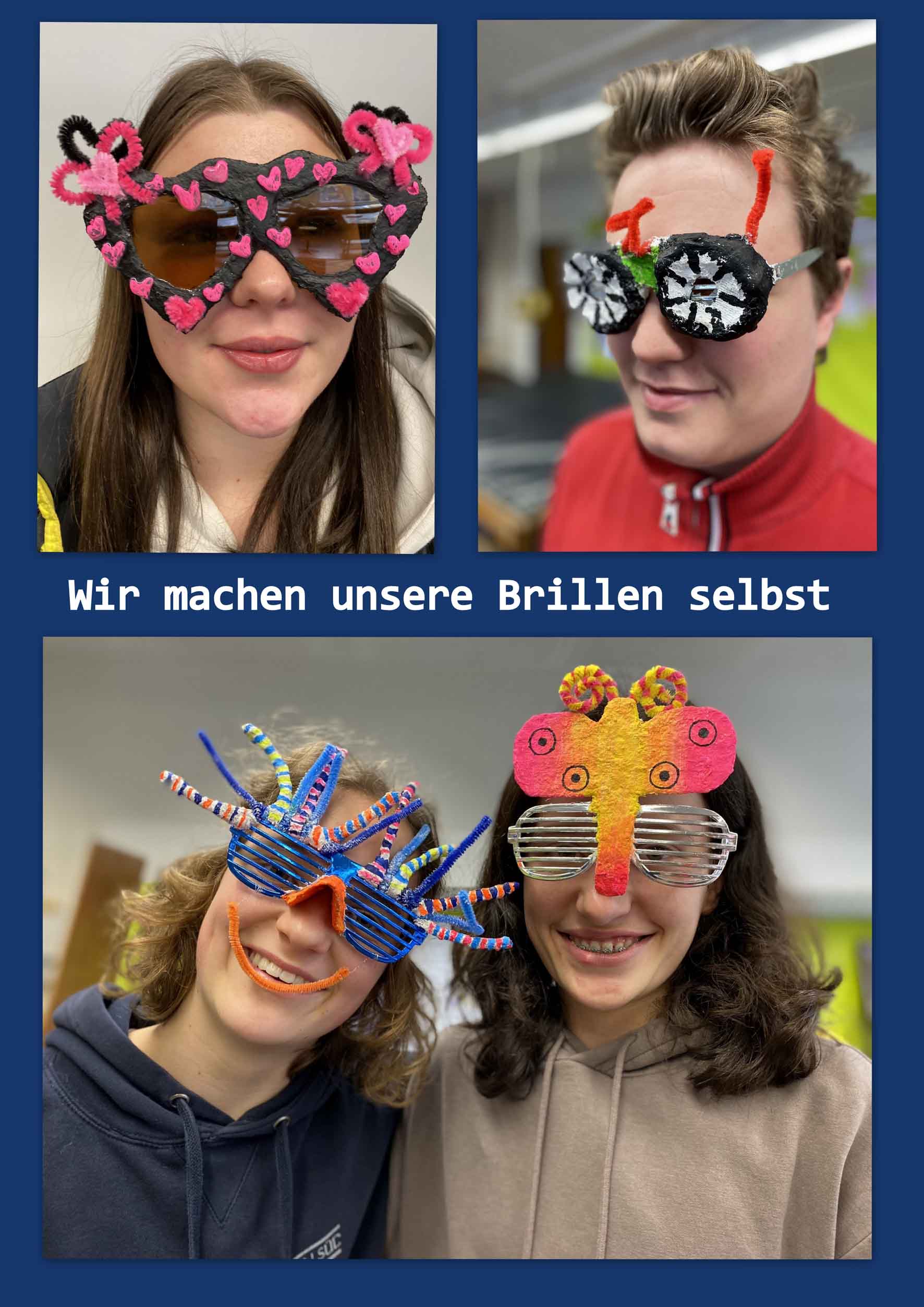 Schau mal an: Im Werkunterricht sind kreative Brillen entstanden. Fasching oder die nächste Party kann kommen. Wir machen unsere Brillen selbst!